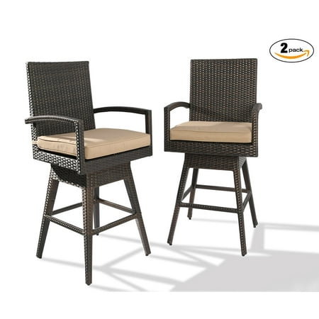 Ulax Furniture 2pack Outdoor Patio Furniture All Weather Brown Wicker Swivel Bar Stool With Cushion