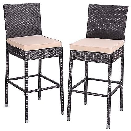 Flamaker Brown Wicker Barstool Outdoor Patio Furniture Bar Stools Set Of 2 Height Bar Chairs High Backless Stools Rattan Dining Chairs