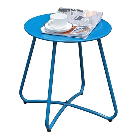 Outdoor Side Tables For Patio End Table Weather Resistant Small Round Coffee Table Steel Port Table Rustic Metal Patio Tables Light Blue